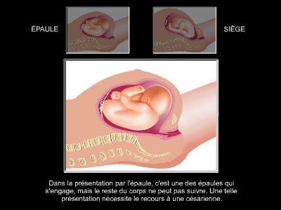 Les présentations transverses, ou obliques, sont toujours des cas d'accouchement dystocique ; elles nécessitent une césarienne.