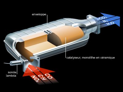 Le moteur à essence des automobiles représente une source importante de pollution. Celle-ci est due à la présence, dans les gaz d'échappement, de monoxyde de carbone, d'oxydes d'azote, d'hydrocarbures imbrûlés et de plomb (provenant du plomb-tétraéthyle ajouté à l'essence pour augmenter son indice d'octane). On y remédie par un meilleur réglage de la carburation et par une postcombustion des gaz d'échappement dans un pot catalytique placé sur le conduit d'échappement ; cette dernière méthode nécessite l'emploi d'essence sans plomb. Les moteurs à injection directe réduisent la consommation de carburant et donc les rejets d'oxydes de carbone. Pour limiter les rejets dans l'atmosphère, par les véhicules, de dioxyde de carbone (gaz à effet de serre), on s'efforce de développer la commercialisation des biocarburants, du gaz de pétrole liquéfié (G.P.L.) et du gaz naturel pour véhicule (G.N.V.).