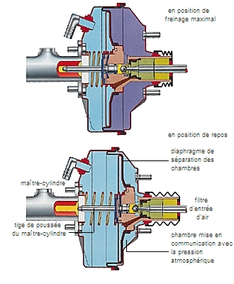 Sur la plupart des poids lourds et des voitures de haut de gamme, la direction est assistée par un servomécanisme à air comprimé (camions) ou à huile sous pression (direction hydraulique), qui prend en charge l'effort nécessaire au pivotement des roues dès que le conducteur tourne le volant. Le freinage est aussi assisté par l'hydraulique : le mouvement du pied sur la pédale de frein est transmis aux roues par un liquide spécial. Les dispositifs de freinage sont des tambours ou des disques qui frottent contre des garnitures. Le frein à disque est progressif et dosable ; son action est liée à l'effort du pied sur la pédale. Quant au frein à tambour, il offre des arrêts énergiques sans effort notable. De nombreuses voitures rapides associent tambours à l'arrière et disque à l'avant. Tout freinage s'accompagne, en effet, d'un report partiel du poids sur l'avant de la voiture ; les freins avant travaillant donc plus que les freins arrière, ils ne doivent absolument pas perdre leur efficacité.