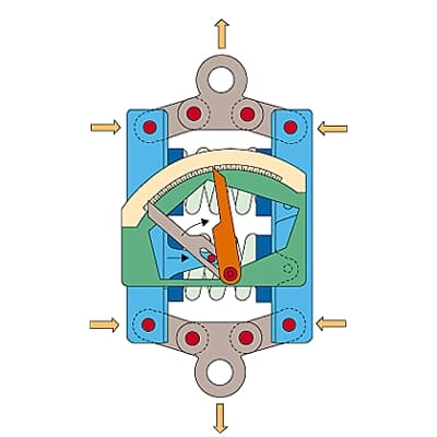 Dans la plupart des dynamomètres, on fait équilibre à la force à évaluer par la tension d'un ressort dont on mesure la déformation à l'aide d'une réglette ou d'un cadran. On préfère souvent coller sur le ressort des jauges de contrainte dont on mesure la variation de résistance électrique. D'autres dynamomètres font appel à des phénomènes qui apparaissent dans des matériaux soumis à des efforts (piézoélectricité, magnétostriction, photoélasticité).