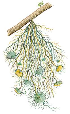 Les lichens sont le fruit d'une symbiose entre un champignon supérieur et un partenaire chlorophyllien. Dans la majorité des cas, ce dernier est une algue verte microscopique (genres Trebouxia ou Trentepholia), mais il peut également s'agir d'une cyanobactérie (Nostoc). Le champignon procure à l'algue un abri qui la protège contre les rayons du soleil. En outre, retenant l'eau dans ses tissus, il lui évite le dessèchement. En retour, l'algue fournit au champignon les molécules organiques qu'elle fabrique par photosynthèse, ainsi que des vitamines qui stimulent sa croissance.