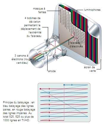 Les recherches en vue d'améliorer la qualité des images, notamment sur les écrans de grandes dimensions, ont conduit à la télévision à haute définition (T.V.H.D.), dont les images ont un nombre de lignes et un nombre de points par ligne bien plus importants ainsi qu'un format parfaitement adapté à la diffusion de films cinématographiques (rapport largeur/hauteur de 16/9), contrairement à celles des systèmes classiques (rapport largeur/hauteur de 4/3). Alors que la définition d'une image de télévision standard est aujourd'hui de 720 x 576 (576 lignes et 720 pixels par ligne), celle d'une image de télévision haute définition est de 1 280 x 720 (720 lignes, 1 280 pixels par ligne) au format 720p (à balayage progressif) et de 1 920 x 1 080 (1 080 lignes, 1 920 pixels par ligne) au format 1 080i (à signaux entrelacés, chaque trame ne comportant que la moitié des lignes).