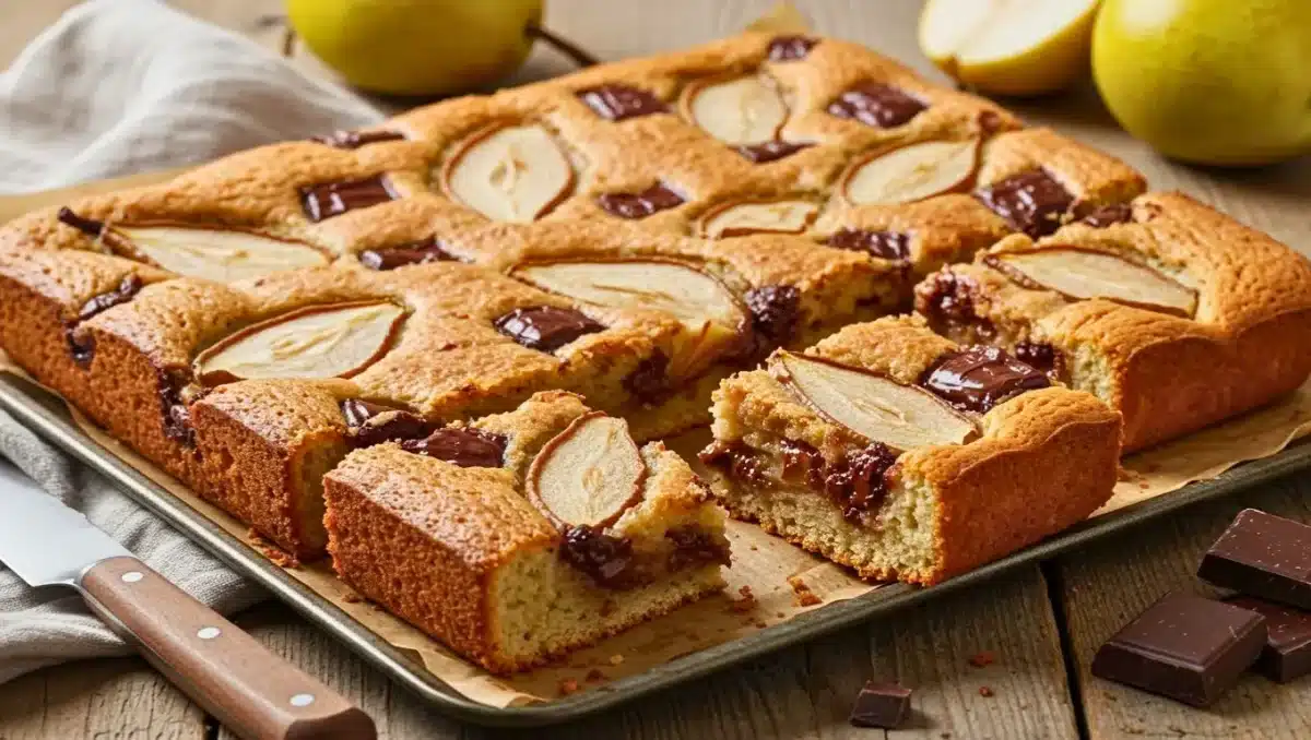 Tout repose sur la maturité des poires. Choisissez-les bien mûres, avec une chair souple et sucrée. À la cuisson, elles se fondent dans la pâte, apportant une humidité naturelle qui garantit une mie tendre et parfumée.