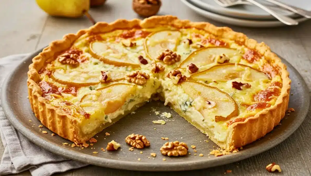 L’alliance poire-fromage, on la connaît. Mais ici, c’est tout un équilibre de textures et de saveurs qui se joue. Le Roquefort, puissant et crémeux, vient caresser la douceur juteuse des poires bien mûres. Et pour lier le tout : une garniture riche en crème, œufs et lait, relevée d’un peu de Gruyère râpé.