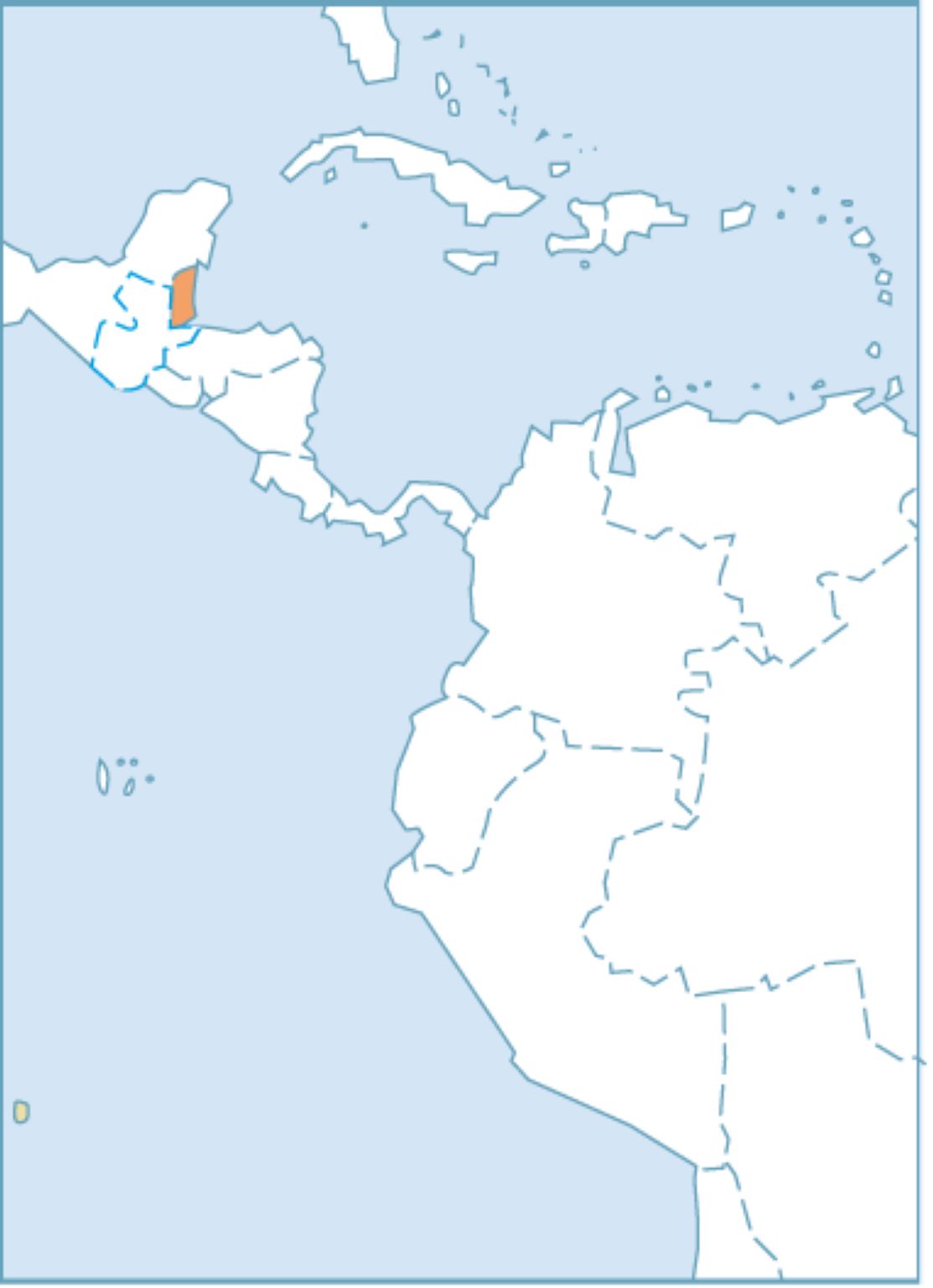 Le pays est montagneux au S., bas et souvent marécageux au N., chaud et humide, recouvert à plus de 40 % de forêts. Sa population est très mélangée : « métis » (d'Amérindiens et d'Espagnols, majoritaires), « créoles » (à l'origine métis anglo-africains, 30 % environ), Mayas, Garifunas issus du métissage entre Africains et Indiens caraïbes.