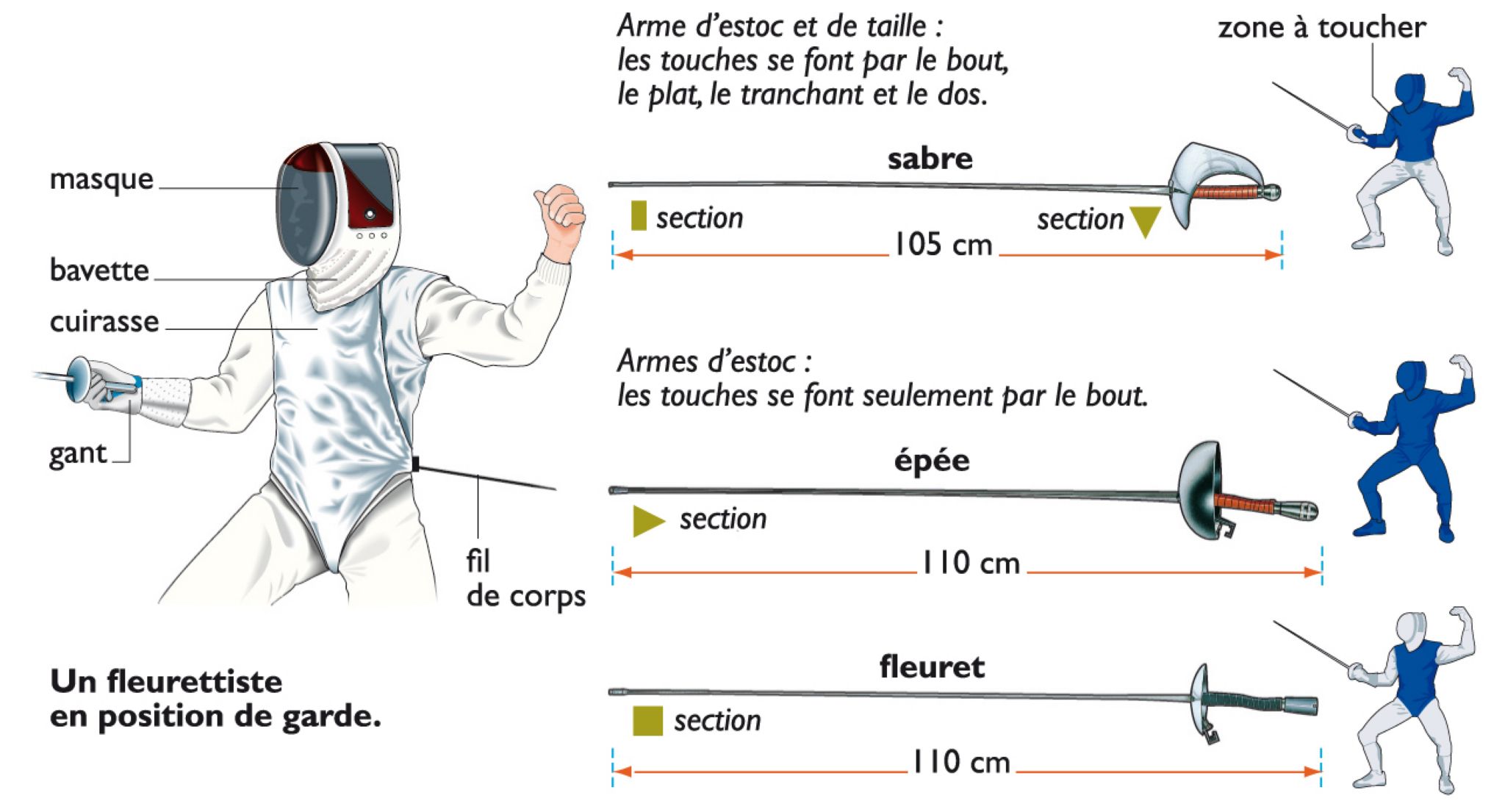 Sport opposant deux adversaires au fleuret, au sabre, à l'épée.