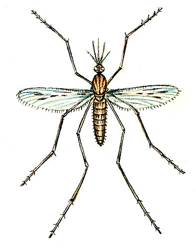 Insecte diptère à abdomen allongé et à longues pattes fragiles, dont la femelle pique la peau de l'homme et des animaux pour se nourrir de leur sang.► Le mâle se nourrit du nectar des fleurs. Le moustique du Canada est appelé maringouin ; l'anophèle est le moustique qui transmet le parasite du paludisme.