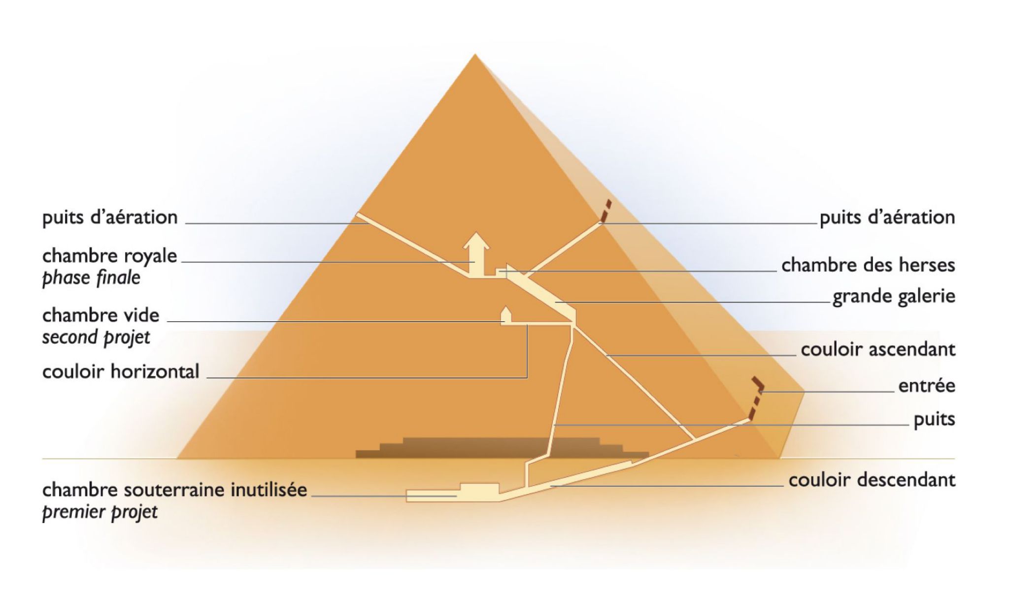 Parfaitement orientée (au moyen de repères astronomiques) et édifiée pendant l'Ancien Empire en matériaux nobles (calcaire appareillé, revêtement de granite, etc.), la pyramide était toujours le point culminant d'un complexe funéraire monumental. Sous la pyramide même, un réseau de galeries et de chambres profondément creusées abrite les sépultures du pharaon et de sa famille ainsi que de nombreuses offrandes. Saqqarah marque, avec les impressionnants degrés recouvrant le mastaba originel, le départ d'une constante évolution qui aboutit à la perfection de Gizeh.