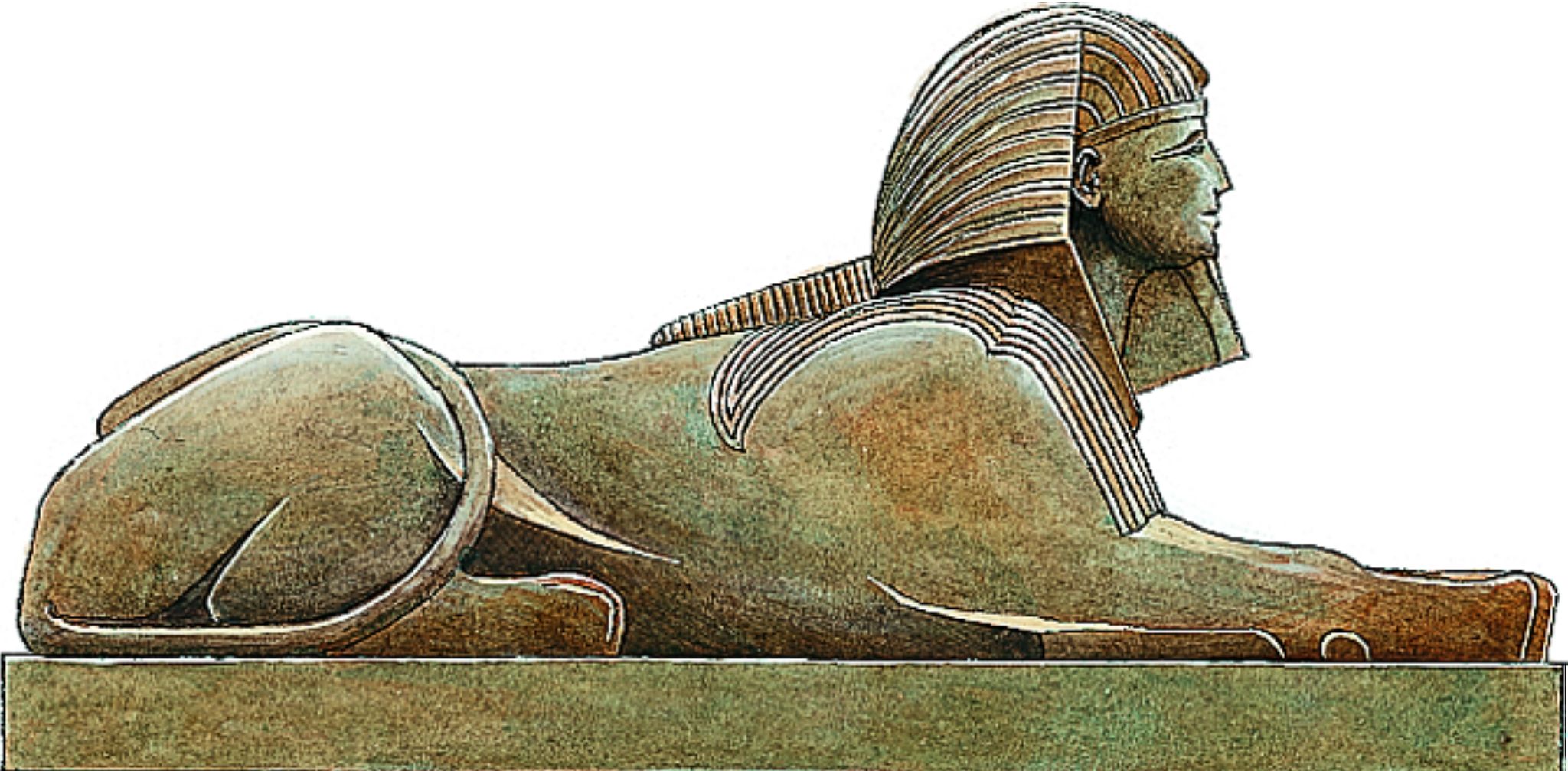 Monstre mythique à corps de lion et à tête humaine, parfois pourvu d'ailes et préposé, dans l'Égypte pharaonique, à la garde des sanctuaires funéraires, sous forme de statue.► Le mythe du sphinx passa ensuite en Grèce, où il était surtout rattaché à la légende d'Œdipe.