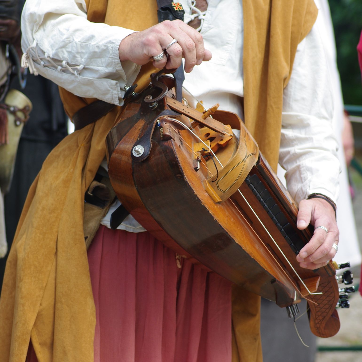 Vièle à clavier dont les cordes sont frottées par une roue mise en rotation par une manivelle. (On dit aussi vielle à roue.)