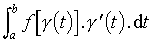 Expressions avec curviligne Intégrale curviligne le long d'un chemin γ continûment dérivable par morceaux, nombre complexe égal à pour γ : [a,b] → ℂ et f, fonction à valeurs complexes, définie et continue sur γ ([a, b]).