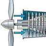 - Propulseur composé d'une turbine à gaz entraînant une ou plusieurs hélices par l'intermédiaire d'un réducteur.