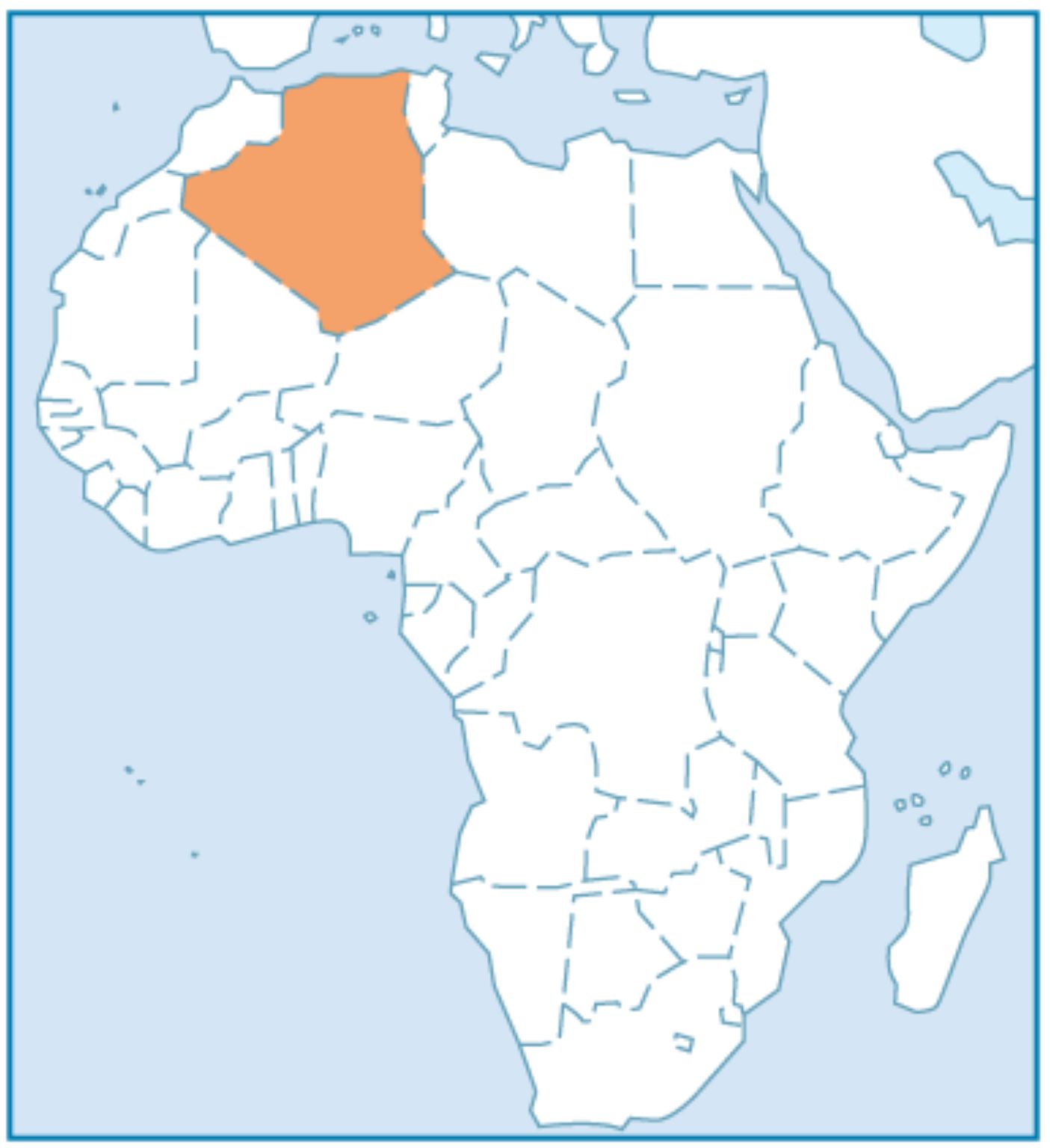 Pays du Maghreb, au nord-ouest de l'Afrique, l'Algérie est le deuxième pays du continent africain pour la superficie. Elle est néanmoins peu peuplée car la plus grande partie du territoire est occupée par le désert du Sahara. Elle possède d'importants gisements de pétrole et de gaz naturel, mais connaît de sérieuses difficultés économiques. Conquise par les Arabes musulmans dès le viie siècle, elle devient un territoire français à partir de 1830. En 1954 commence la guerre d'Algérie, au terme de laquelle le pays accède à l'indépendance, en 1962. Secoué par de graves attentats liés au terrorisme islamiste dans les années 1990, le pays s'efforce, depuis, de mener une politique de réconciliation nationale.