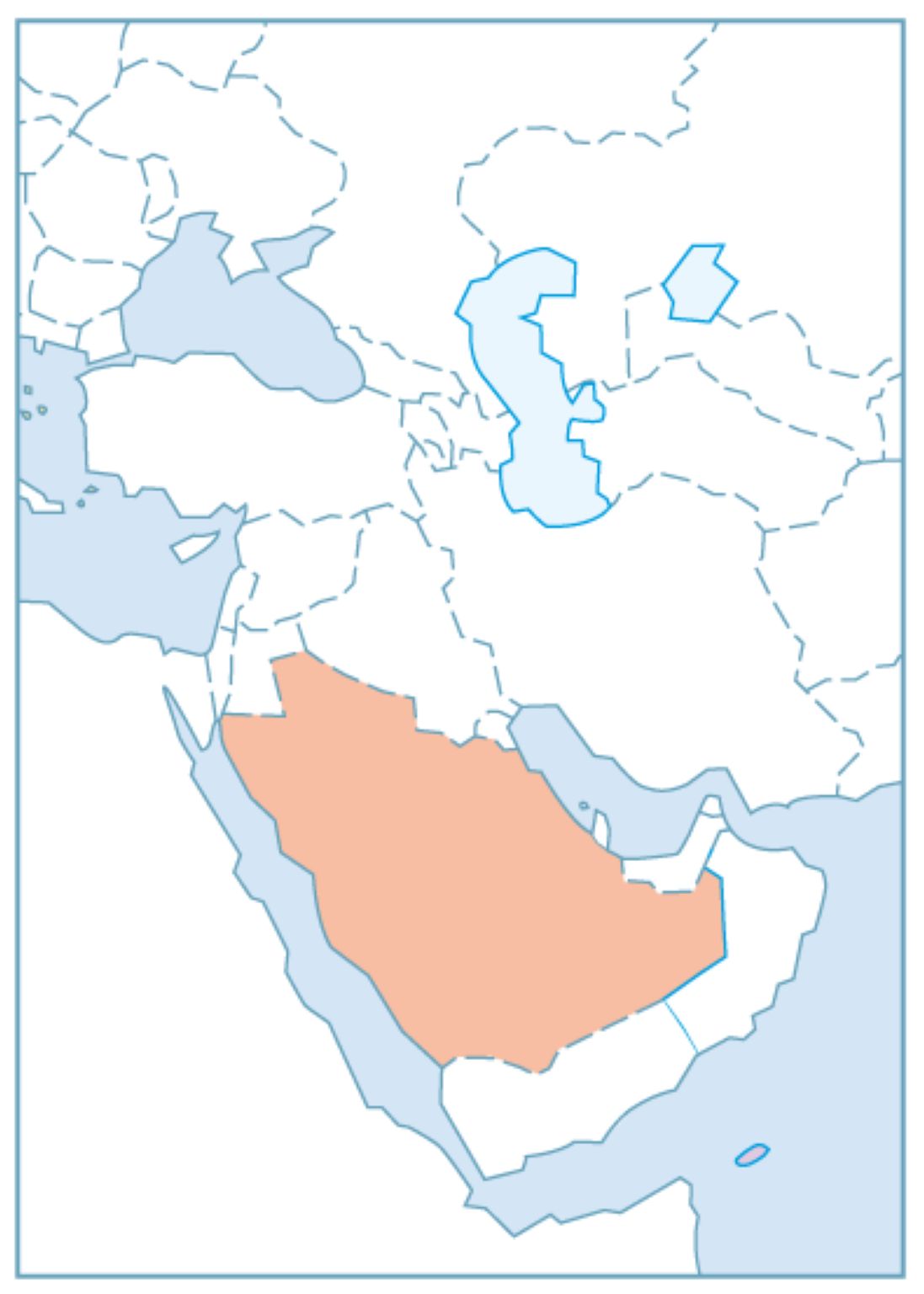 Le royaume d'Arabie saoudite occupe presque toute la péninsule d'Arabie. C'est le premier exportateur de pétrole du monde. Les revenus du pétrole ont permis le développement de l'industrie (raffinage, notamment) et la mise en place de cultures, coûteuses sous ce climat désertique. Le pays comprend deux villes saintes de l'islam : Médine et, surtout, La Mecque.