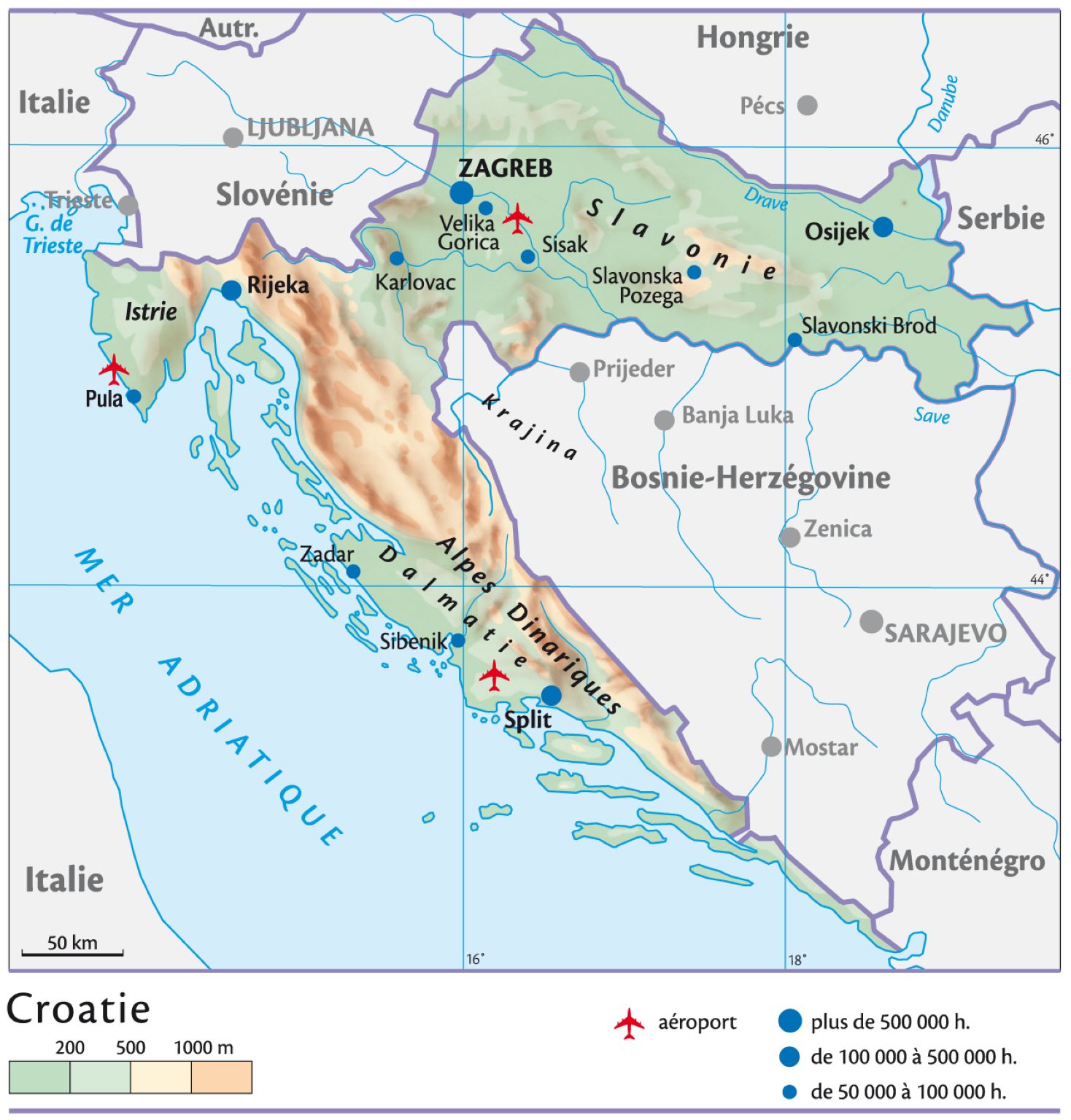 Pays des Balkans issu de l'éclatement de la Yougoslavie, la Croatie a proclamé son indépendance en 1991, mais le conflit a été sanglant entre Croates et Serbes. À l'ouest et au sud, le littoral de la mer Adriatique (Dalmatie) est une grande région touristique. La Croatie a rejoint l'Union européenne en 2013.
