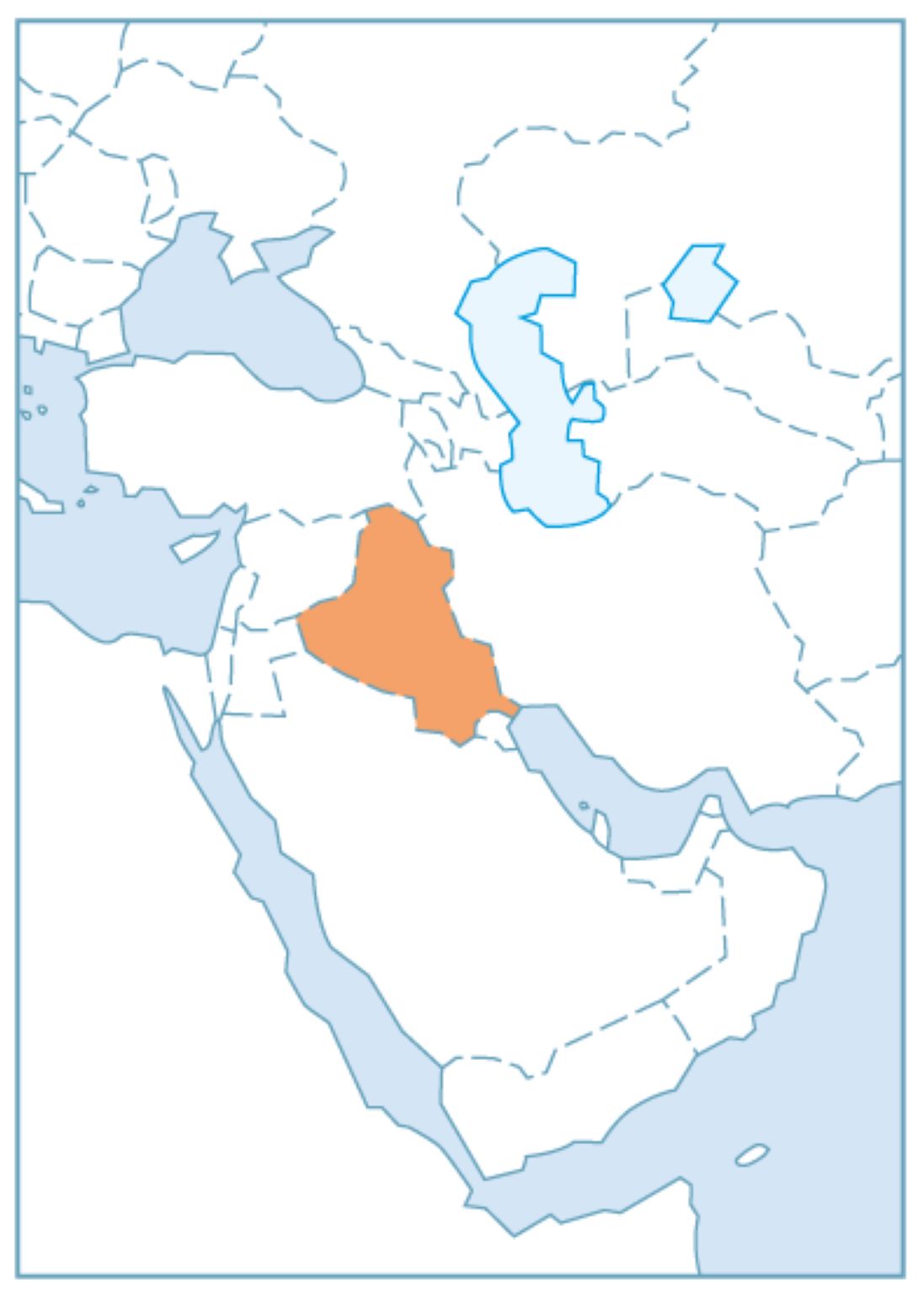L'Iraq (ou Irak) occupe la majeure partie de l'ancienne Mésopotamie. L'économie du pays, qui repose sur le pétrole, a été gravement perturbée par de nombreux conflits depuis 1980. En 2003, une offensive militaire menée par les Américains et les Britanniques a conduit à l'effondrement du régime de Saddam Husayn (ou Hussein) qui dirigeait le pays depuis 1979. L'Iraq connaît depuis un état d'insécurité permanent, qui rend sa reconstruction difficile.