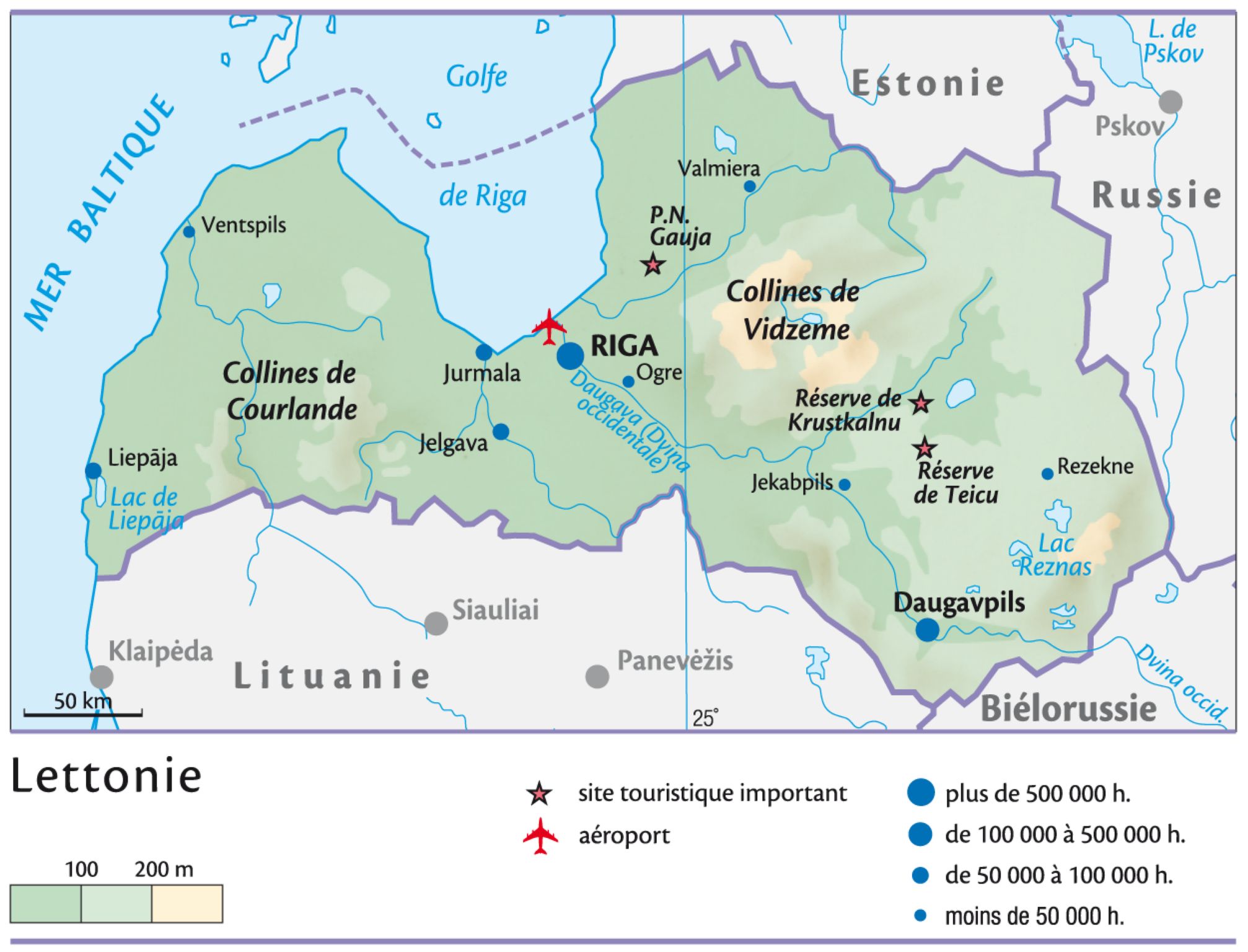 Située sur la mer Baltique, la Lettonie, ancienne république d'URSS, est indépendante depuis 1991. Comptant une forte minorité de Russes, le pays est urbanisé et industrialisé. La Lettonie est entrée dans l'Union européenne en 2004.