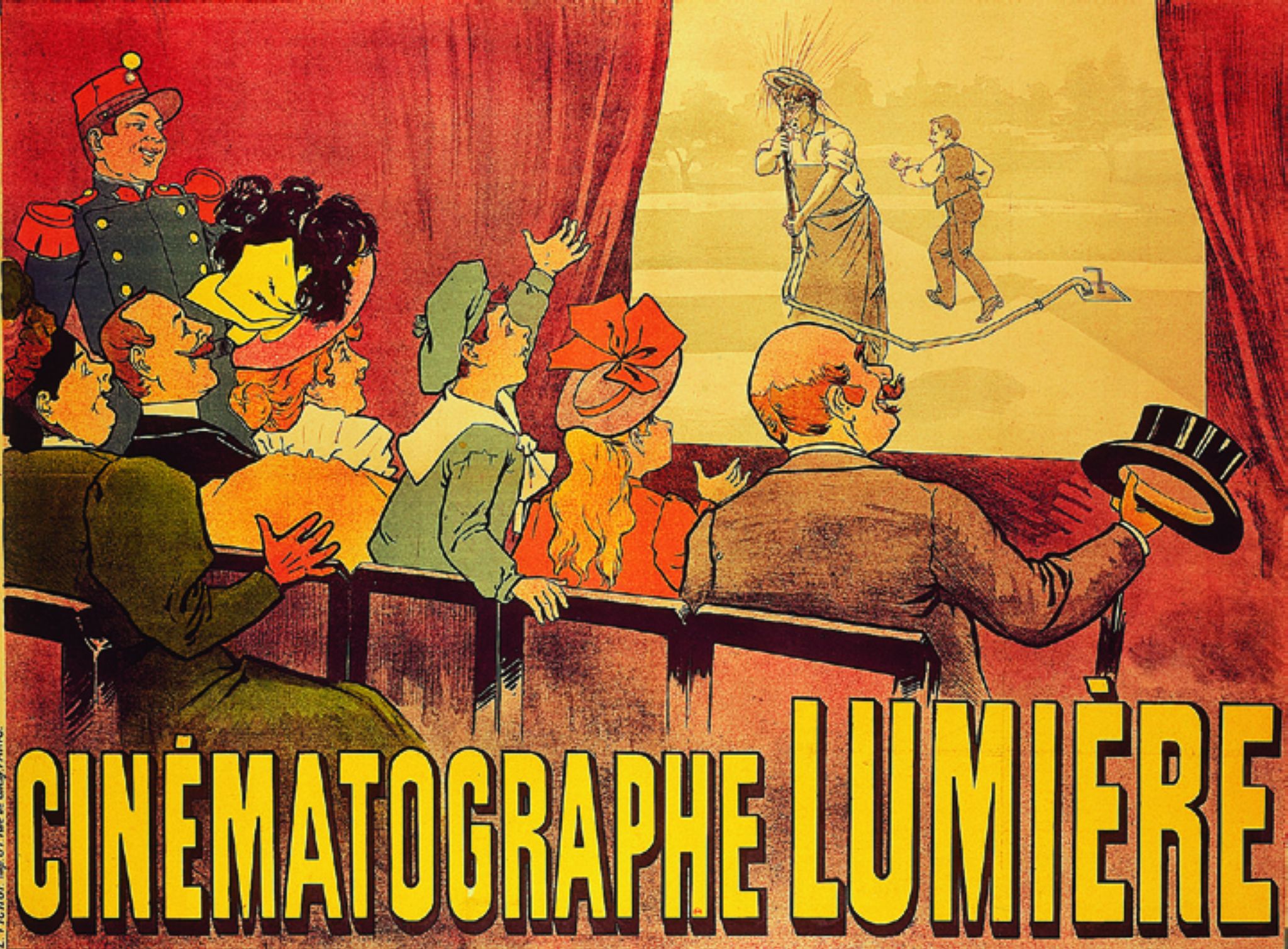 Inventeurs du premier appareil de prises de vues et de projection (le cinématographe), les frères Lumière réalisèrent de nombreux films, dont le premier fut un documentaire : la Sortie des usines Lumière. Il fut projeté pour la première fois en public au Grand Café, à Paris, en 1895. D'autres films sont restés célèbres : l'Arrivée d'un train en gare de La Ciotat, qui provoqua l'émoi chez les spectateurs qui croyaient que la locomotive fonçait sur eux, et, l'Arroseur arrosé, courte histoire comique, considéré comme le premier récit cinématographique.