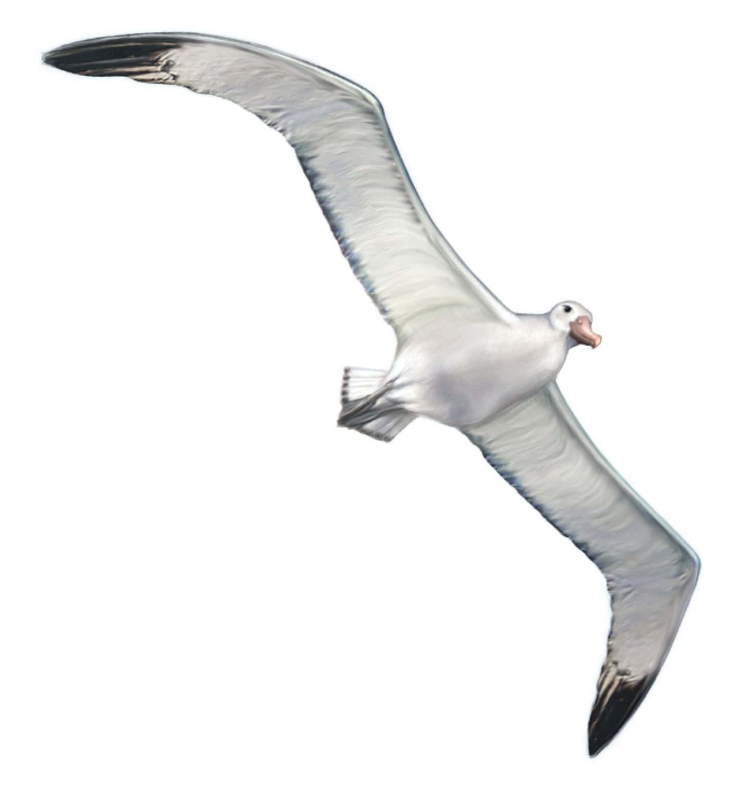 Grand oiseau de mer blanc ou gris. La largeur des ailes d'un albatros est de trois mètres environ.