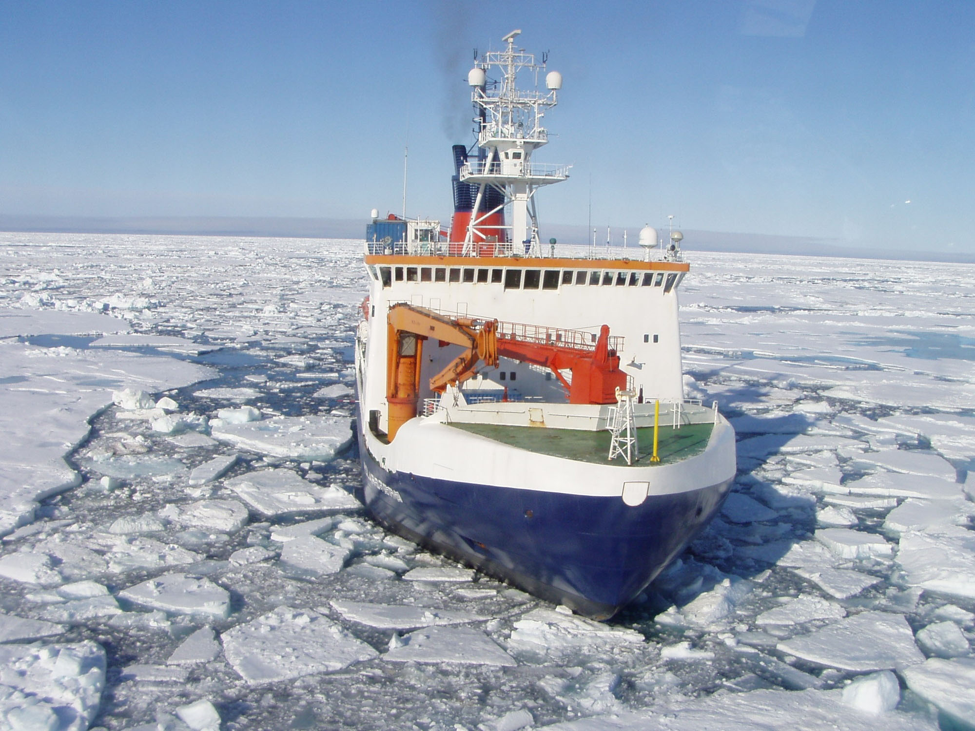 Dans les mers polaires, épaisse couche de glace qui est formée par de l'eau de mer gelée.