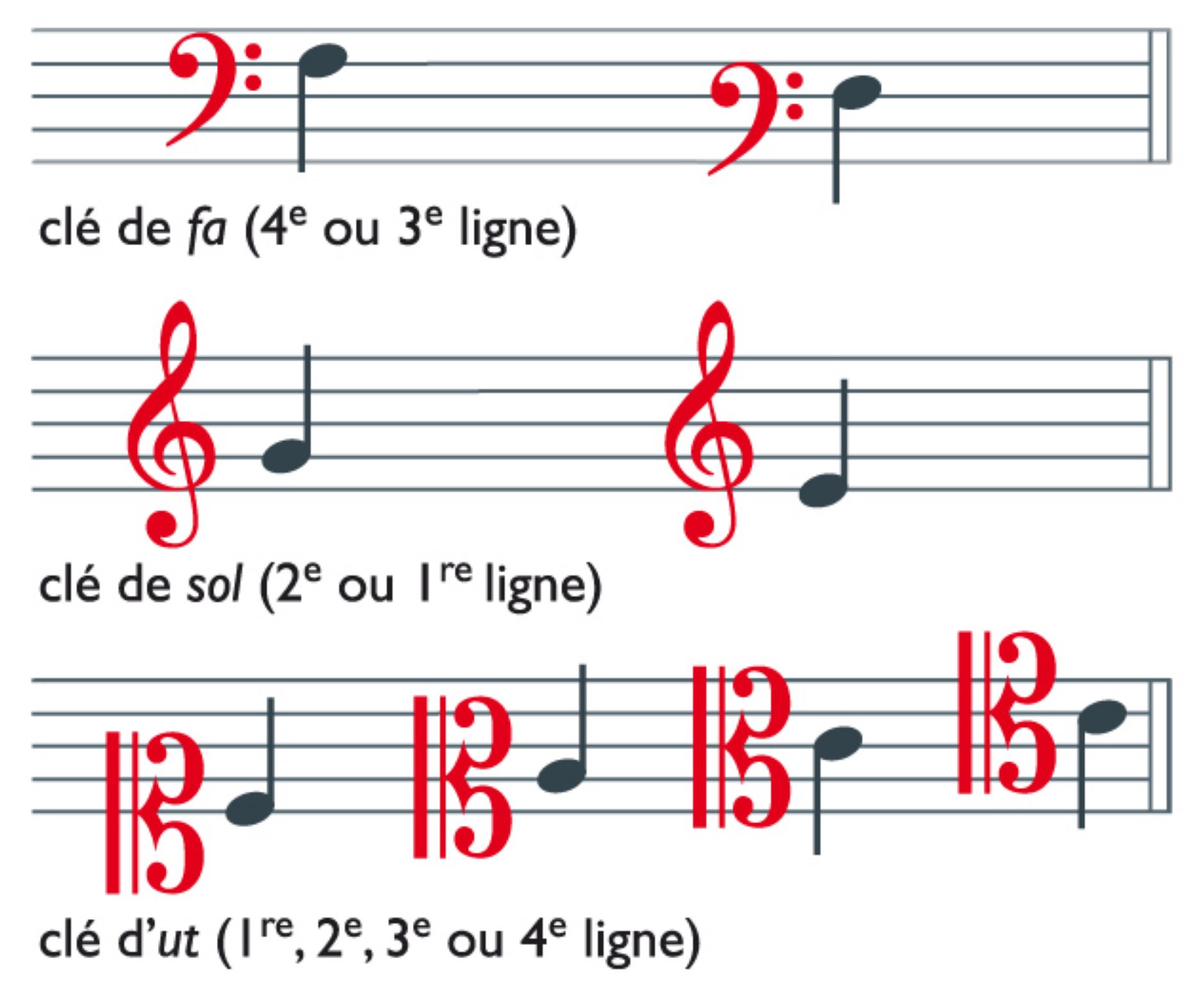 - En musique, signe placé au début de la portée qui permet d'identifier les notes. La clé de sol, de fa.