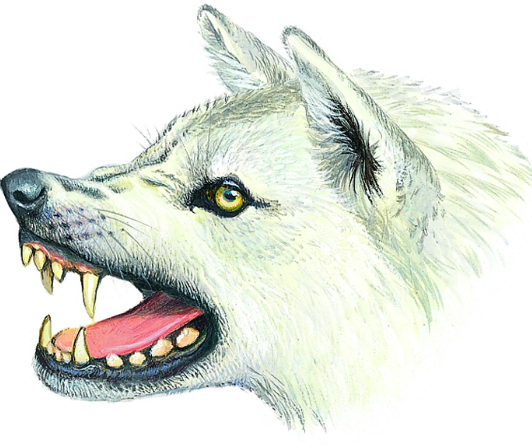 Canine longue et pointue des mammifères carnassiers. Le chien montre ses crocs.