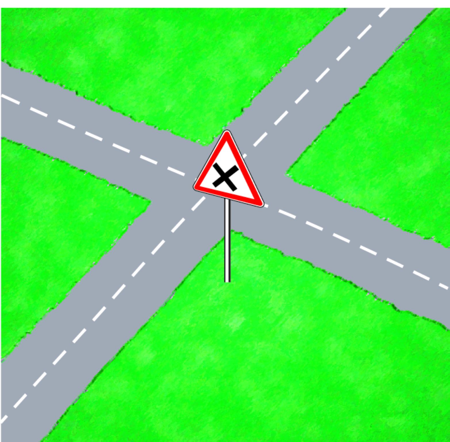 Endroit où deux lignes, deux routes se coupent. Il y a une station-service à l'intersection des deux routes. SYN. croisement.