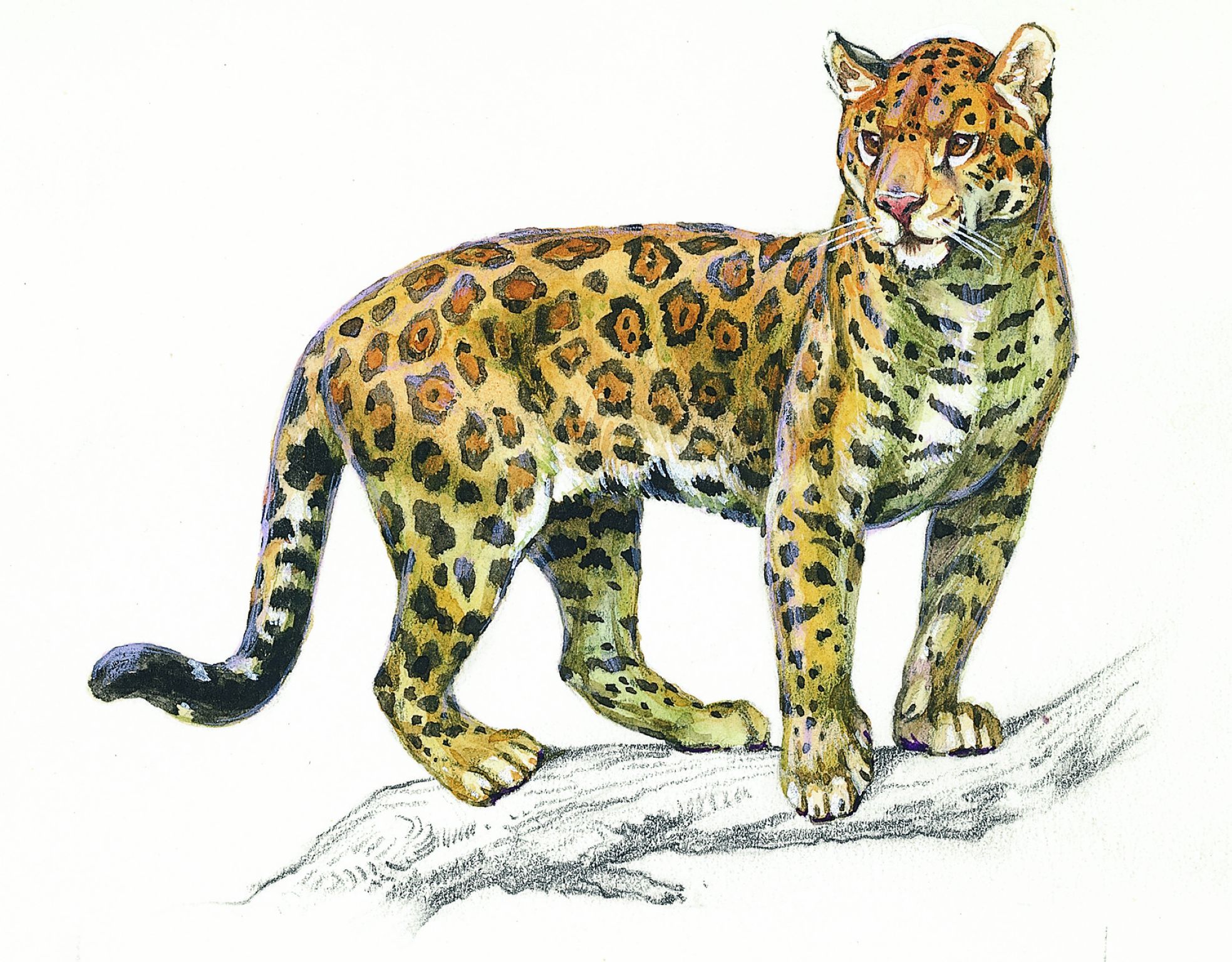 Grand félin d'Amérique du Sud, voisin de la panthère, au pelage fauve tacheté de noir.