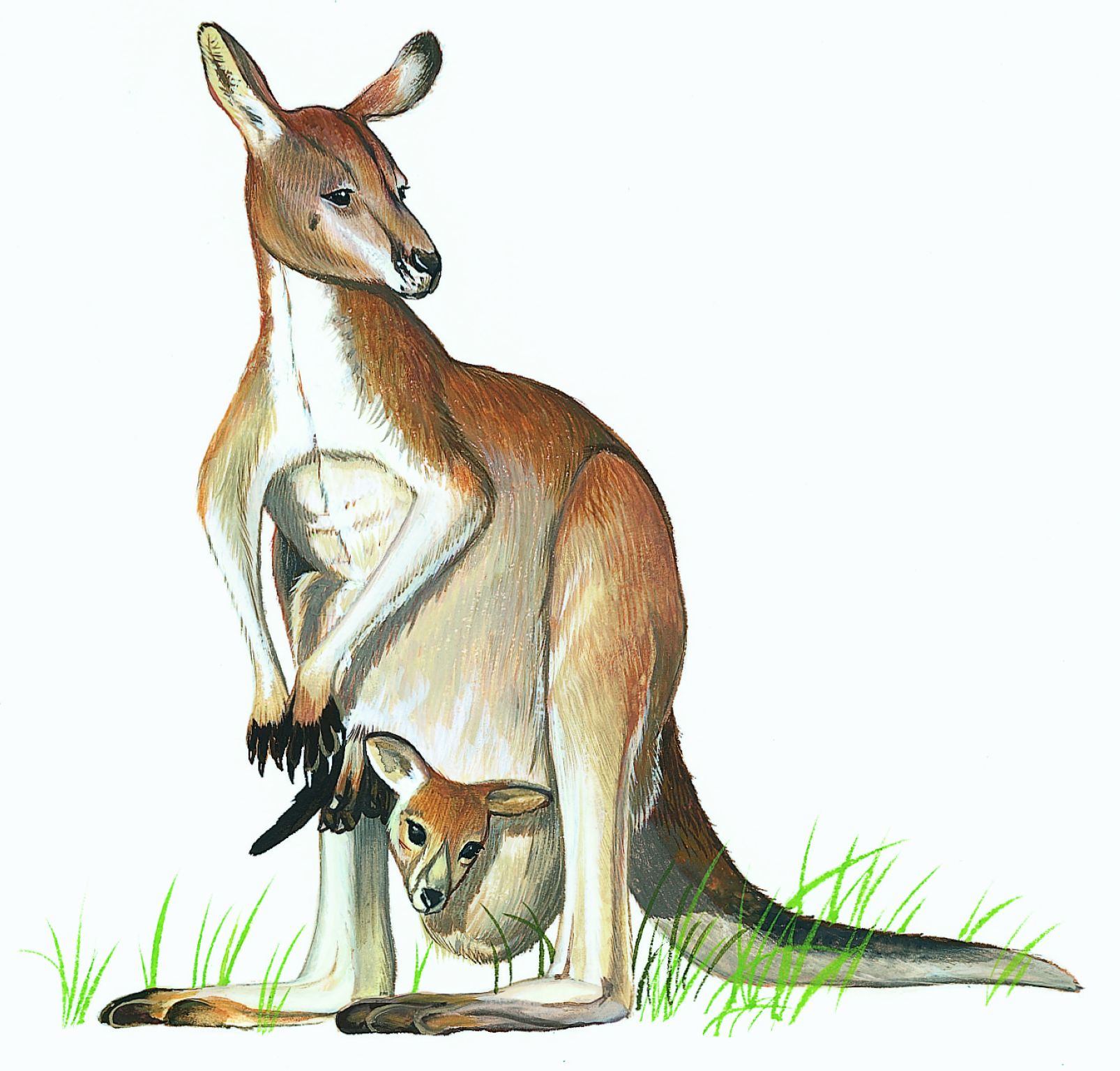 Mammifère herbivore d'Australie, qui avance en sautant sur ses grandes pattes de derrière. Le petit kangourou poursuit son développement dans la poche ventrale de sa mère.