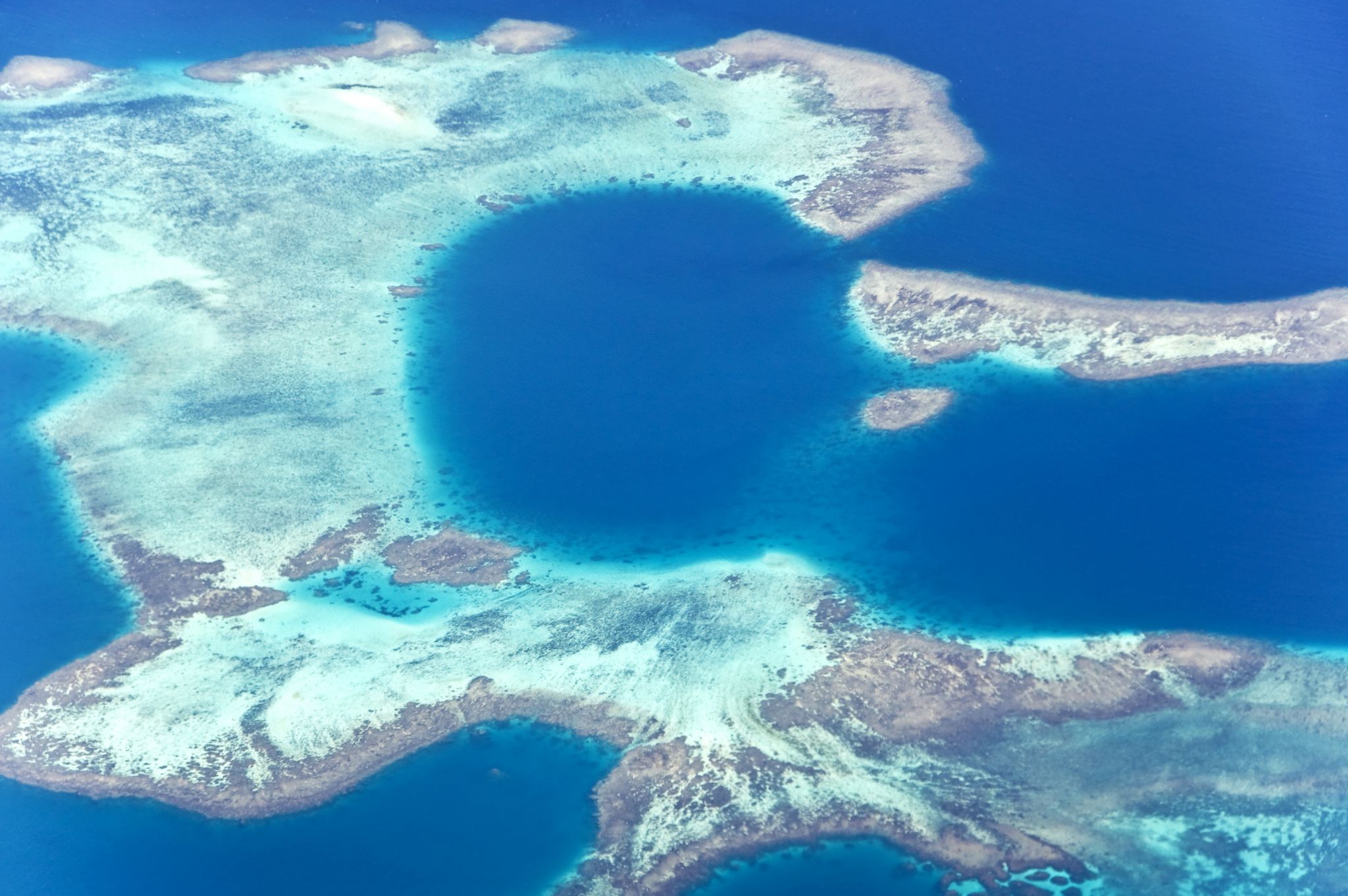 Petit lac d'eau salée coupé du large par un récif de corail. Les lagons de Tahiti.