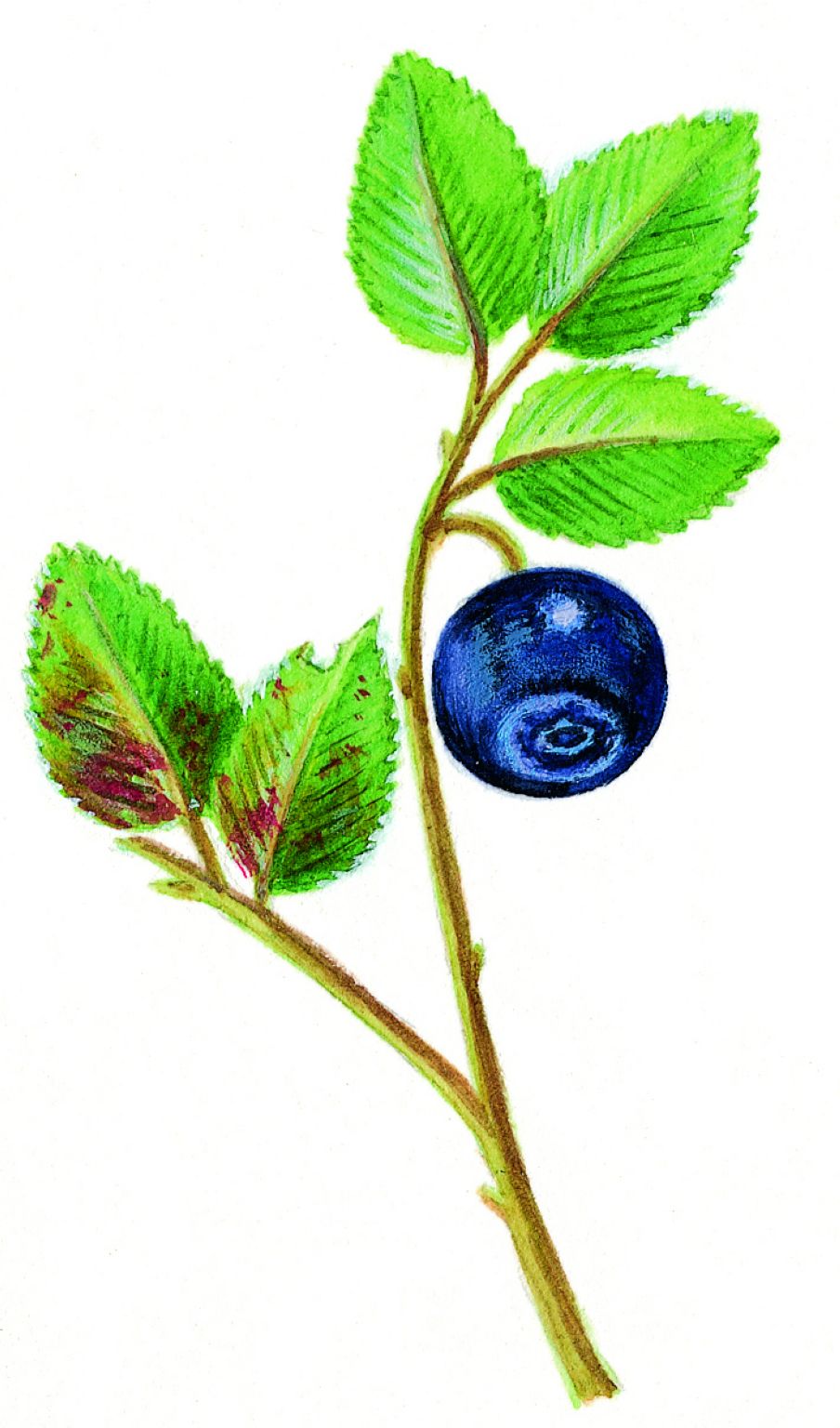 Petit fruit rond bleu-noir qui pousse dans les montagnes d'Europe sur un arbrisseau sauvage appelé aussi « myrtille ».