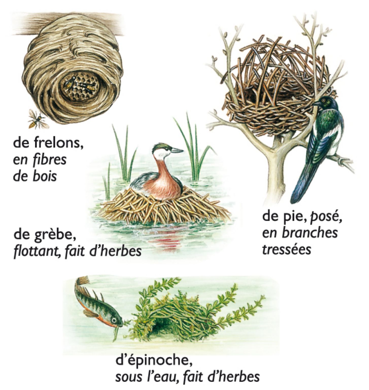 Abri que construisent les oiseaux pour pondre, couver leurs œufs et élever leurs petits. Les cigognes font leur nid sur le toit des maisons.