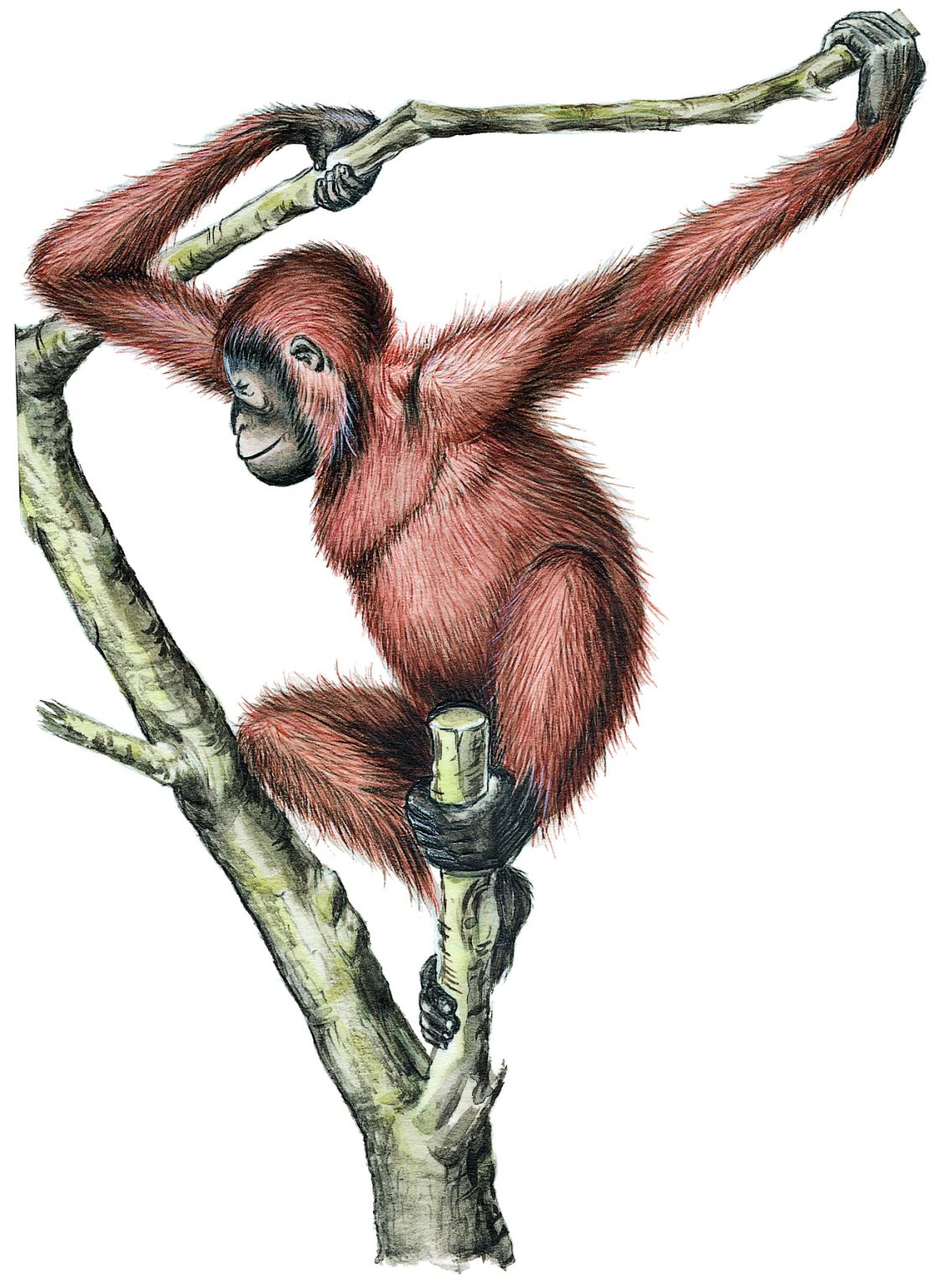 Grand singe d'Asie, aux bras très longs et à la fourrure rousse, qui vit dans les arbres.