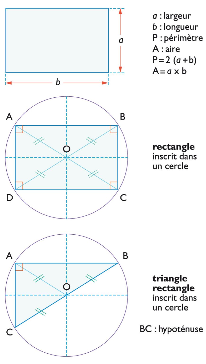 Figure géométrique qui a quatre angles droits et dont les côtés sont égaux deux à deux. Dessinez un rectangle de 10 cm de long sur 5 cm de large.
