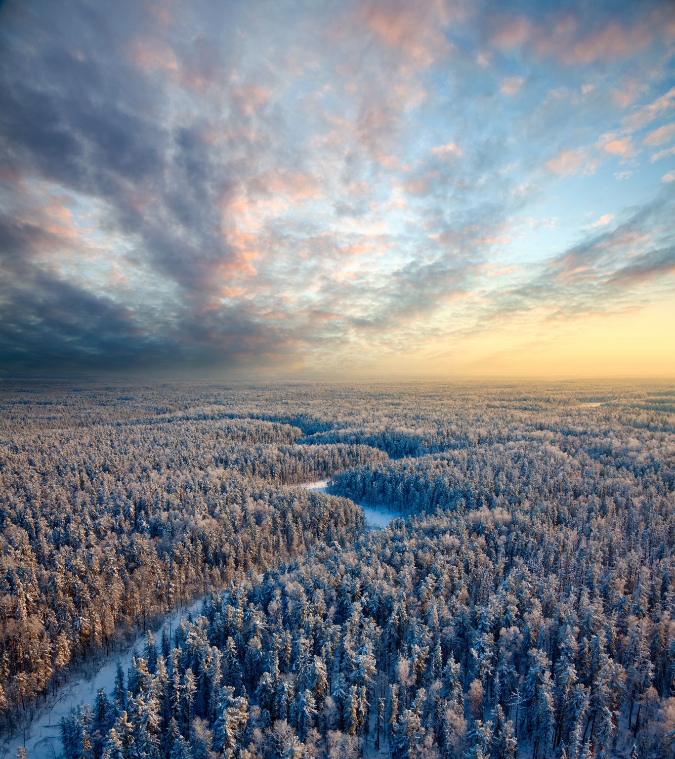 Forêt de conifères qui pousse dans le nord de l'Europe, de l'Asie et de l'Amérique.