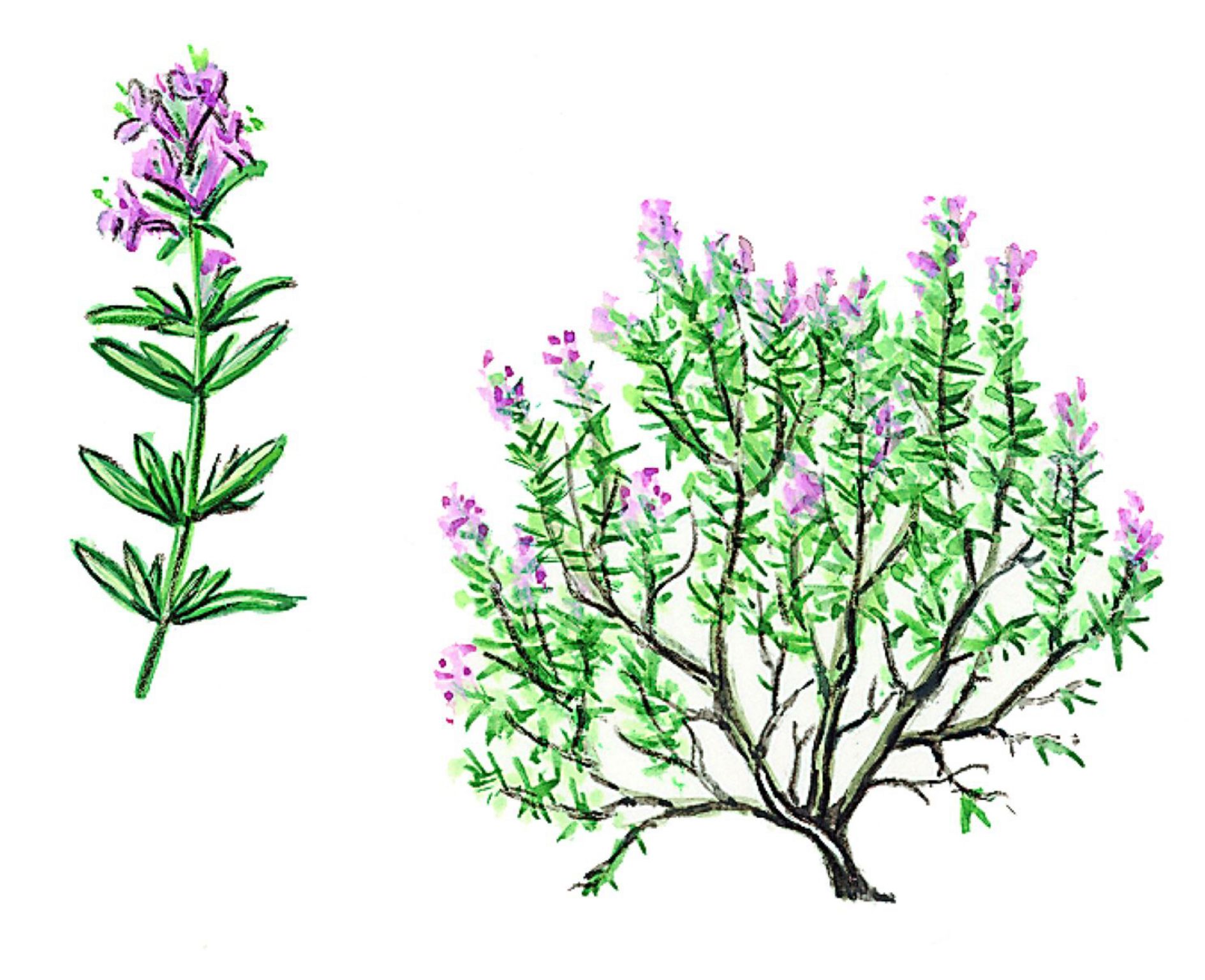 Plante aromatique que l'on utilise en cuisine pour parfumer les plats. Mamie a mis du thym dans la sauce.