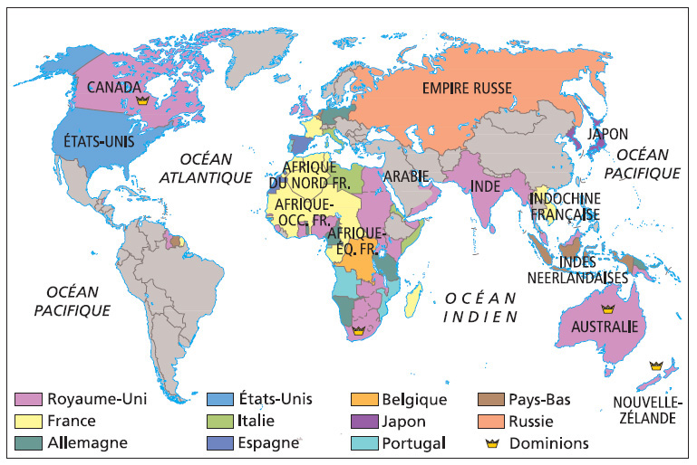 Les empires coloniaux. En 1900, le partage du monde entre les grandes puissances est quasiment achevé.