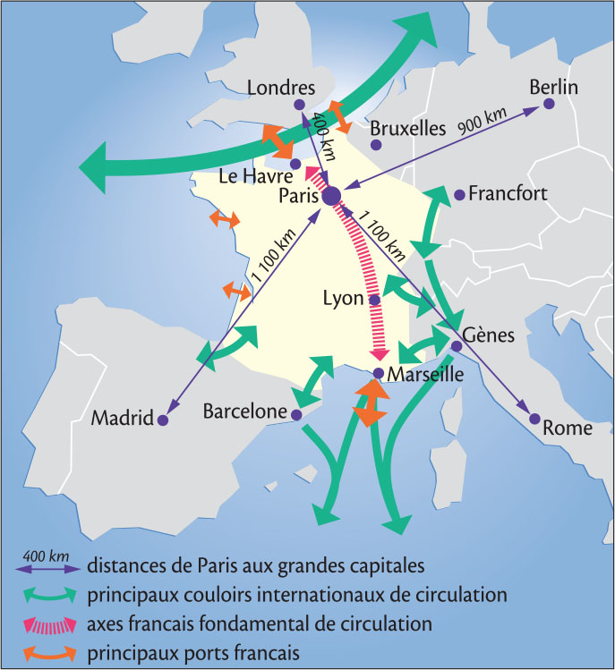 Malgré le rôle joué par la décentralisation administrative et le développement des autres grandes villes, Paris concentre la plus grande partie du pouvoir de décision en matière politique et économique. Avec plus de 10 millions d’habitants, près d’un Français sur six vit dans l’agglomération parisienne. Marseille et Lyon sont loin derrière. Les villes de taille moyenne sont relativement nombreuses : une quarantaine dépassent 100 000 hab.