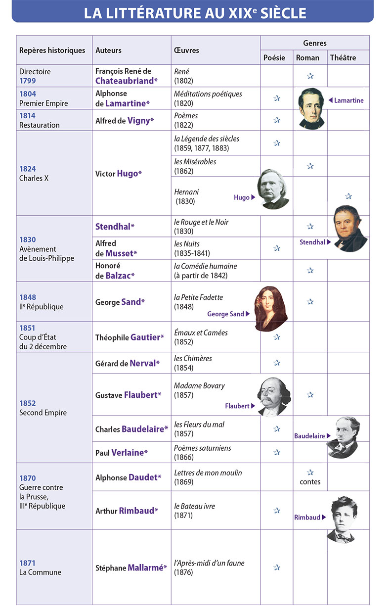 Chateaubriand, Vigny et la génération des écrivains de 1820, avec Lamartine et Hugo, cultivent l’émotion et l’image d’un poète à la sensibilité triste et écorchée.