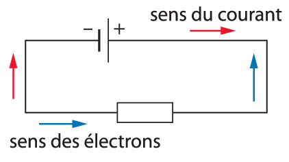 Dans un circuit électrique fermé, composé de conducteurs métalliques, le courant est constitué par un déplacement d’électrons assuré par le générateur. Si ce générateur est une pile, les charges électriques circulent toutes toujours dans le même sens ; le courant est dit continu.