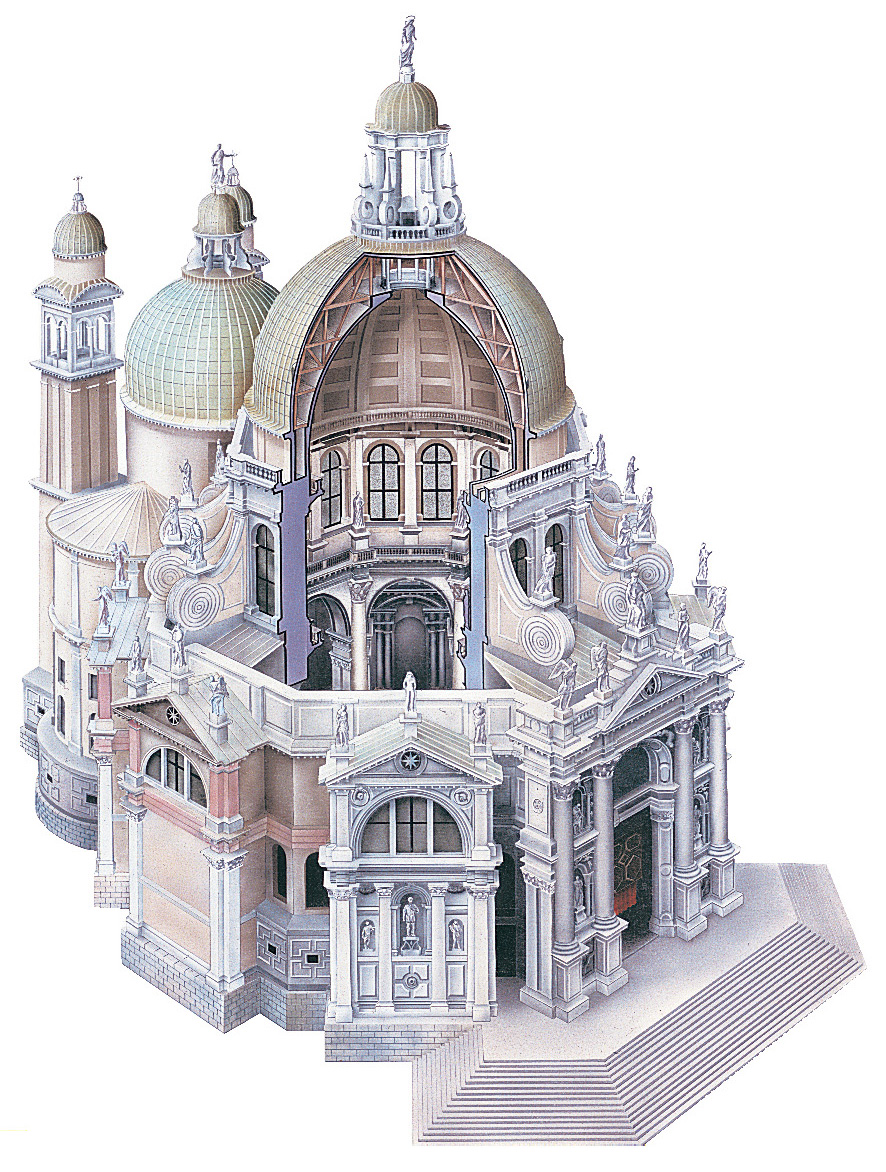 Église S.Maria della Salute, de style baroque, à Venise (1631), par Baldassare Longhena.