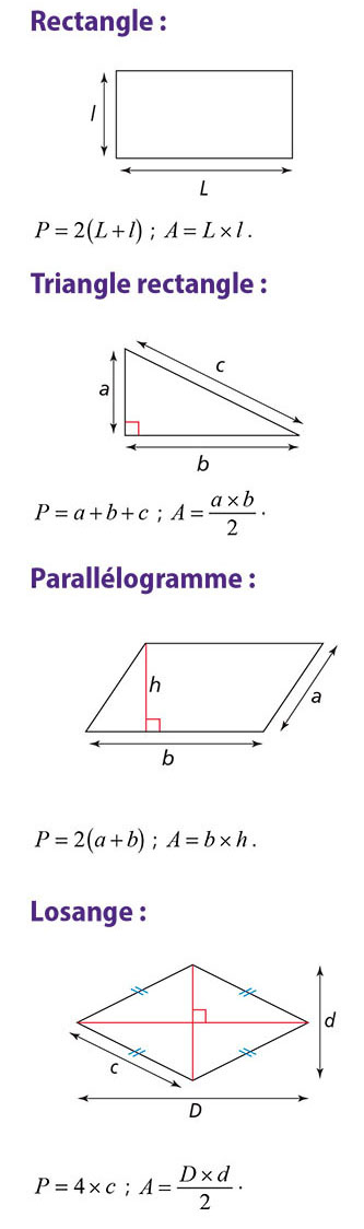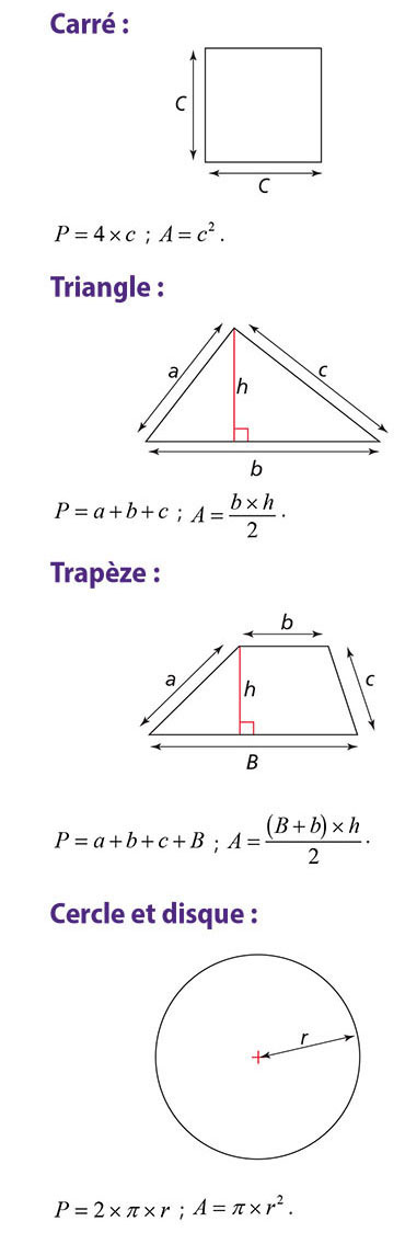 Périmètres et aires des figures usuelles