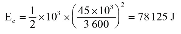 Une voiture d’une tonne (103 kg) roulant à 45 km/h possède une énergie cinétique que l’on peut calculer :