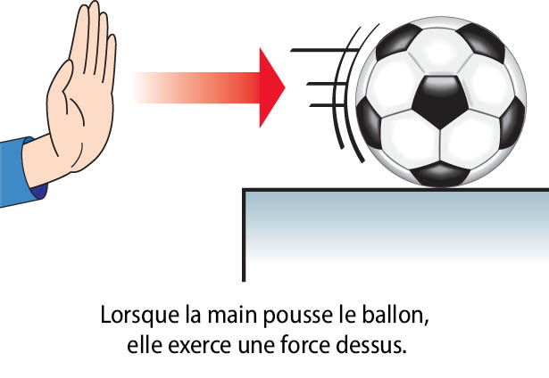 Supposons un ballon immobile sur un plan horizontal ; par une poussée de la main, nous le mettons en mouvement. Cette action qui a provoqué le mouvement est appelée « force ».