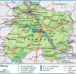 - Chefs-lieux d'arrondissements : Épernay, Reims, Sainte-Menehould, Vitry-le-François