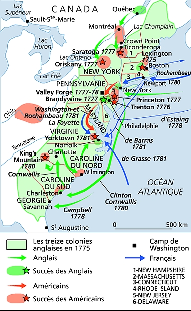 La paix de Paris (3 septembre 1783) reconnaît l'existence de la République fédérée des États-Unis.