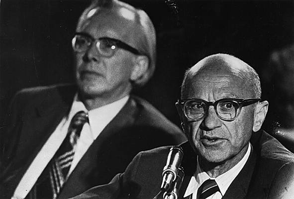 Économiste libéral américain, lauréat du prix Nobel en 1976, Milton Friedman est aussi un économiste « monétariste », qui explique l'inflation par une croissance excessive de la masse monétaire. La lutte contre l'inflation passe par le contrôle de la création de monnaie et par l'équilibre du budget de l'État. Friedman s'attaque aux politiques économiques d'inspiration keynésienne, conçues pour lutter contre le chômage. Ces politiques, généralement inflationnistes, ne réduiraient pas le chômage, dans la mesure où il existe un chômage naturel réputé incompressible, car lié aux structures du marché du travail (insuffisance de l'information sur les emplois disponibles, lobbys syndicaux, salaire minimum).