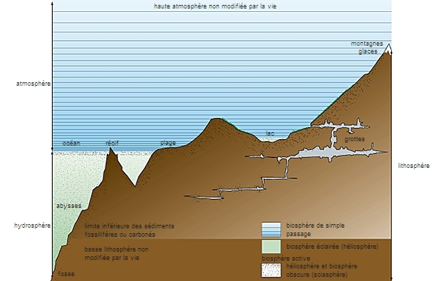 On appelle écosystème un ensemble d’êtres vivants (biocénose) et d’éléments non vivants aux interactions nombreuses d’un milieu naturel (biotope). L’ensemble des écosystèmes terrestres constitue la biosphère. Chaque milieu correspondant à un écosystème met en relation une communauté d’espèces vivantes et des conditions physiques particulières. On distingue ainsi deux grandes composantes : les végétaux et les animaux d’une part, les minéraux, l’air, l’eau et les traces d’aménagements humains. Dans les écosystèmes, les êtres vivants établissent entre eux des relations alimentaires, appelées « chaînes alimentaires » et organisées en réseaux. Par la reproduction, animaux et végétaux peuplent les milieux. Chez les végétaux, graines et spores permettent la conquête de nouveaux milieux, dont l’envahissement se fait par des stolons, des rhizomes ou des bulbes. Chez les animaux le peuplement des nouveaux milieux se fait par les déplacements des adultes ou des larves. Les écosystèmes sont menacés par l’action parfois dévastatrice de l’homme sur son environnement (introduction d’espèces exogènes, prélèvements excessifs [pratique à outrance de la chasse, surpêche], dégradation des biotopes [pollution, réchauffement climatique]). La disparition ou la dégradation d’un élément propre à un écosystème, qui constitue un des maillons de sa chaîne alimentaire, conduit à un déséquilibre écologique et à terme à l'élimination de l’ensemble de la biocénose. La biodiversité s’en trouve ensuite menacée et les animaux et végétaux, qui fournissent à l’homme des aliments, des matières premières, des médicaments risquent de disparaître, ce qui peut le mettre lui-même en péril.