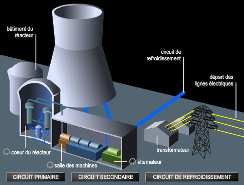 Dans une centrale nucléaire, on utilise la chaleur dégagée par la fission de l'uranium pour produire de l'électricité. Ce principe de fonctionnement est identique à celui des centrales thermiques classiques dans lesquelles la chaleur provient de la combustion du charbon, du gaz ou du fioul.
