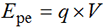 Une particule chargée placée dans un champ électrique (→ électricité) possède une énergie potentielle électrique, notée Epe. Cette énergie dépend de la charge q de la particule et du potentiel électrique V du point où se trouve la particule :